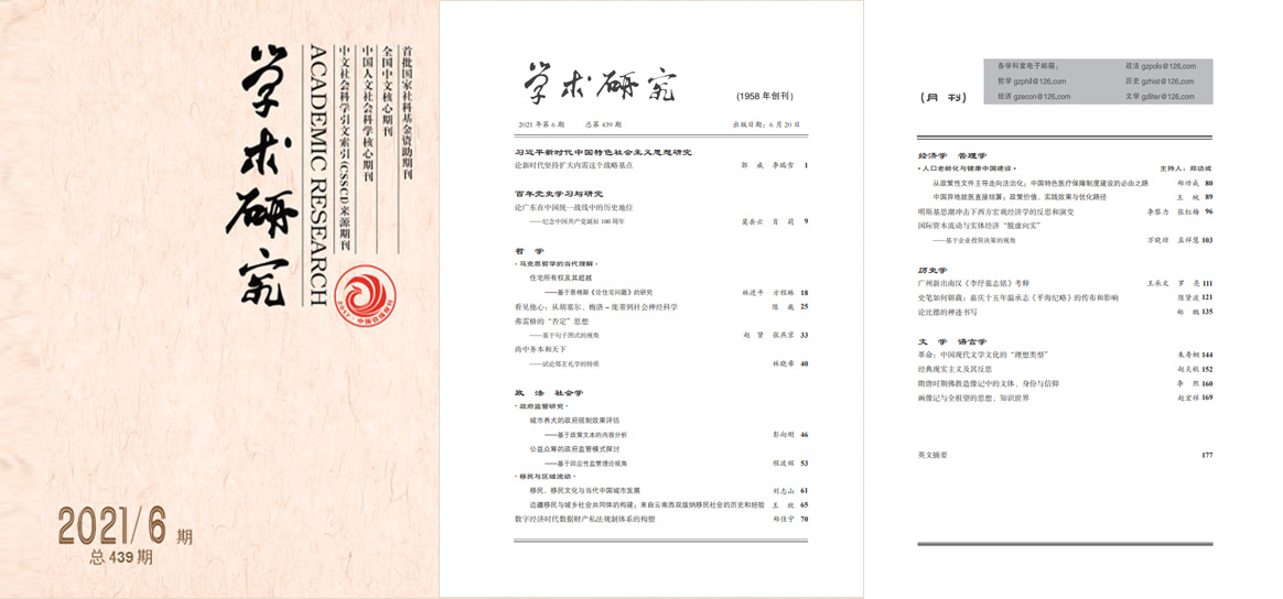 地址:廣州市天河區(qū)天河北路618號廣東社會科學中心B座7樓學術研究雜志社